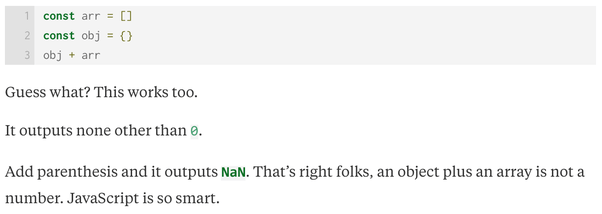 The images are instantly recognizable doge shibe hide the pain harold kermit the frog distracted boyfriend and the phrases are too. Interactive courses on typescript modern javascript sql regular expressions and more. Wow64 applewebkit 534 khtml like gecko bingpreview 1 0b. I unintentionally found this javascript meme on reddit and it s the best one i ve ever seen. When the 206 partial content status code is sent this mime type indicates that the document is composed of several parts one for each of the requested ranges. This attribute is purely advisory. If you want to compare an int and string in java you must first convert them to the same type.