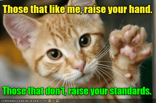 When you raise your standards and turn should into must you are making an inner shift to take control over the quality of your life. Bitch you are beard funny memes one can always trust a man with a beard glasses ladies if your man has a beard raise your hand. Having standards means a greater chance of having happiness. Any area you are not getting what you want is because you haven t raised your standards. Stick to your guns before you give your heart away so that you can actually fall in love with someone who is good both to and for you. When will the day end. Raise your quality standards as high as you can live with avoid wasting your time on routine problems and always try to work as closely as possible at the boundary of your abilities.